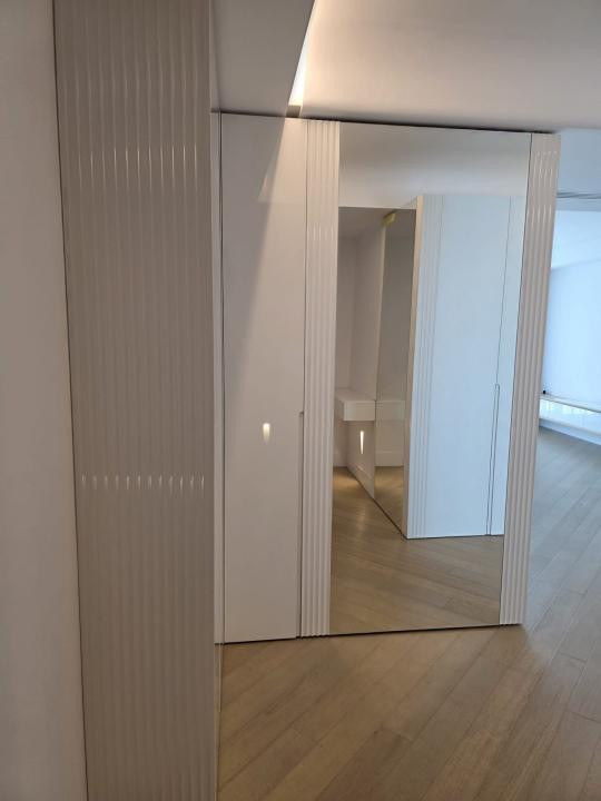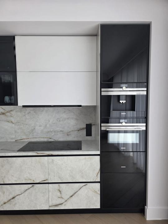 Apartamentul se remarcă prin amenajarea elegantă și finisajele premium, fiecare detaliu fiind ales cu atenție pentru a crea un ambient modern și rafinat. Bucătăria este complet echipată cu electrocasnice încorporate, iar designul interior minimalist pune în valoare materialele de calitate și spațiile bine proporționate.