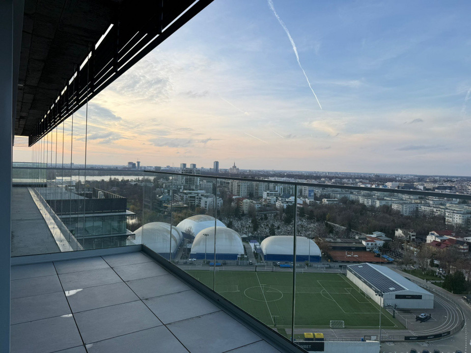 De la etajele superioare se deschid vederi spectaculoase asupra întregii zone Floreasca, incluzând cele patru lacuri din împrejurimi.
